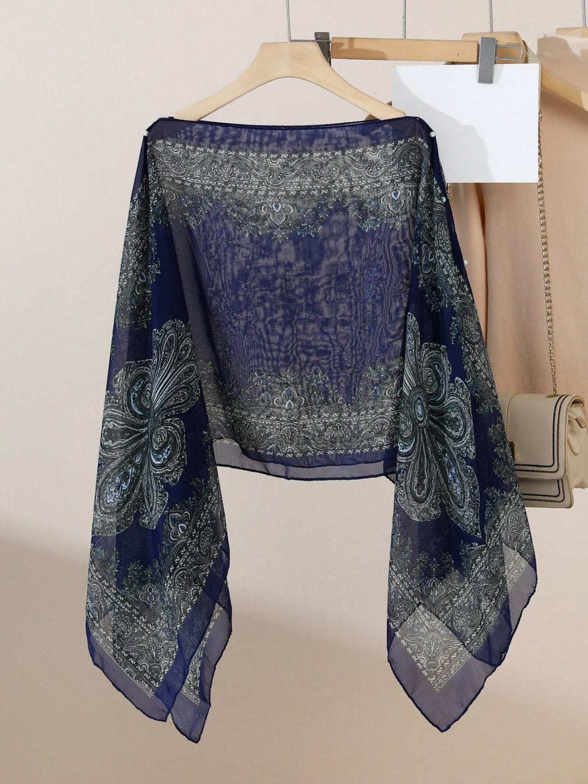 قطعة واحدة شيفون خفيف مطبوع بطراز نباتي عتيق، أزرار لؤلؤية فضفاض من الموضة،كساء، غطاء رأس، حماية من الشمس، مناسب للسفر والاستخدام اليومي كإكسسوار للسيداترمضان