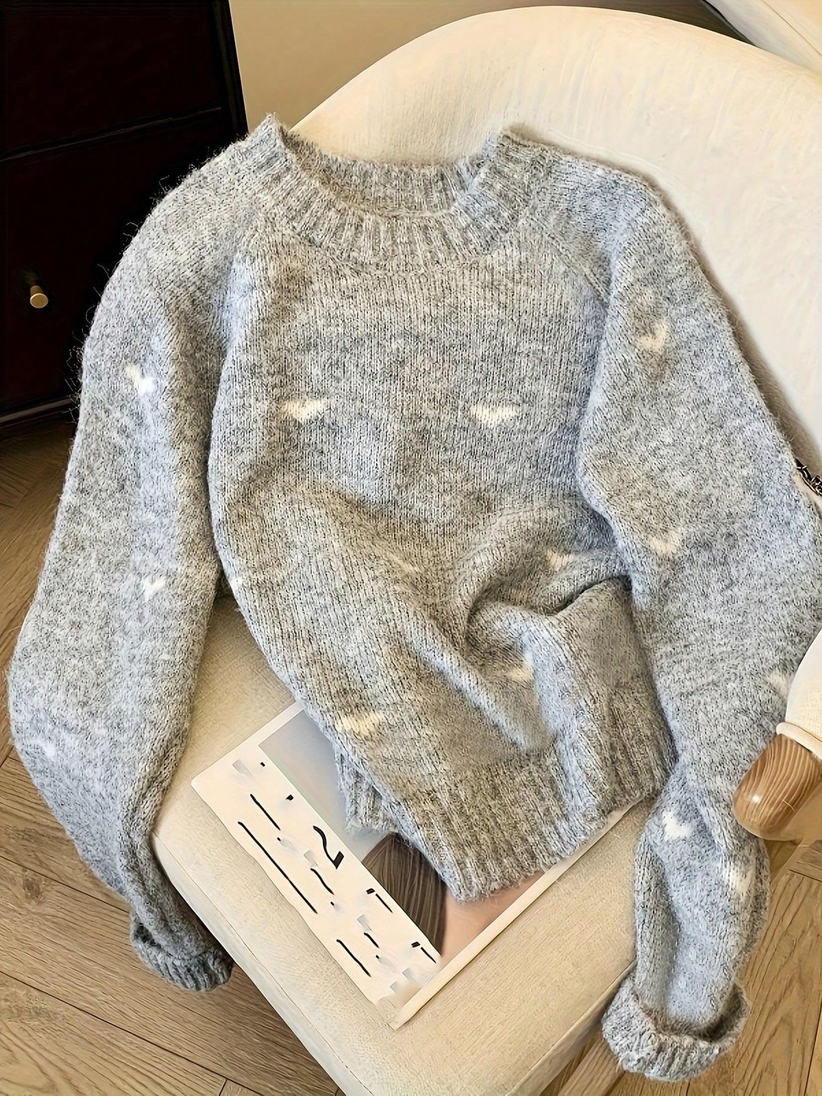 بلوزة تريكو شتوي بلون سماوي فاتح، تصميم بسيط بخامة ناعمة وقَصّة مريحة للاستخدام اليومي.
