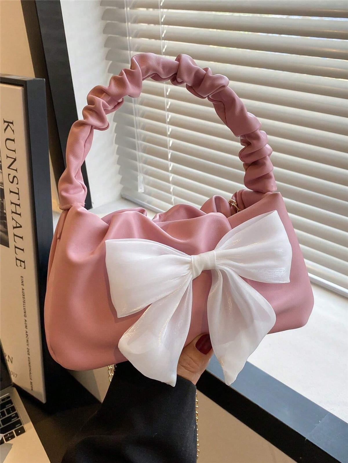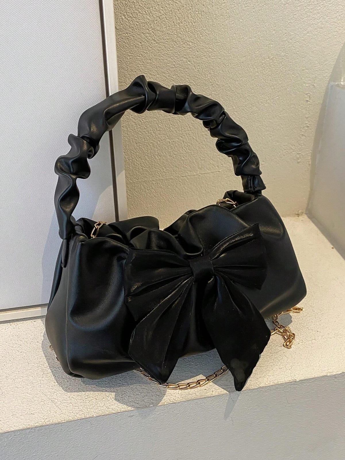 حقيبة يد للنساء على شكل هلال بارز الحواف مميزة، حقيبة كتف صغيرة على شكل سحابة مزينة بوشاح وفيونكة، حقيبة رسول كاجوال مع سير معدني