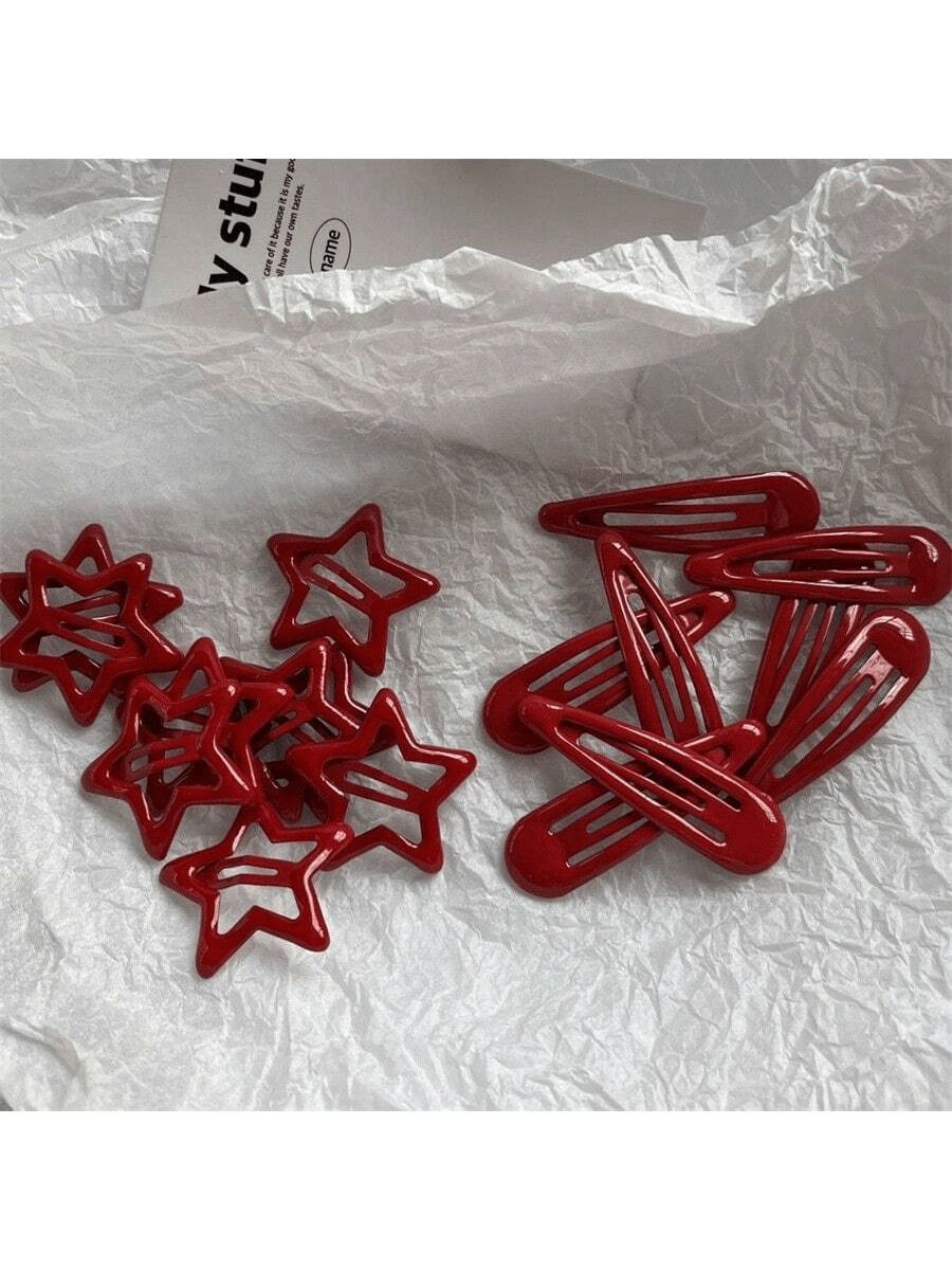 دبابيس شعر حمراء بأشكال نجوم ودبابيس عادية