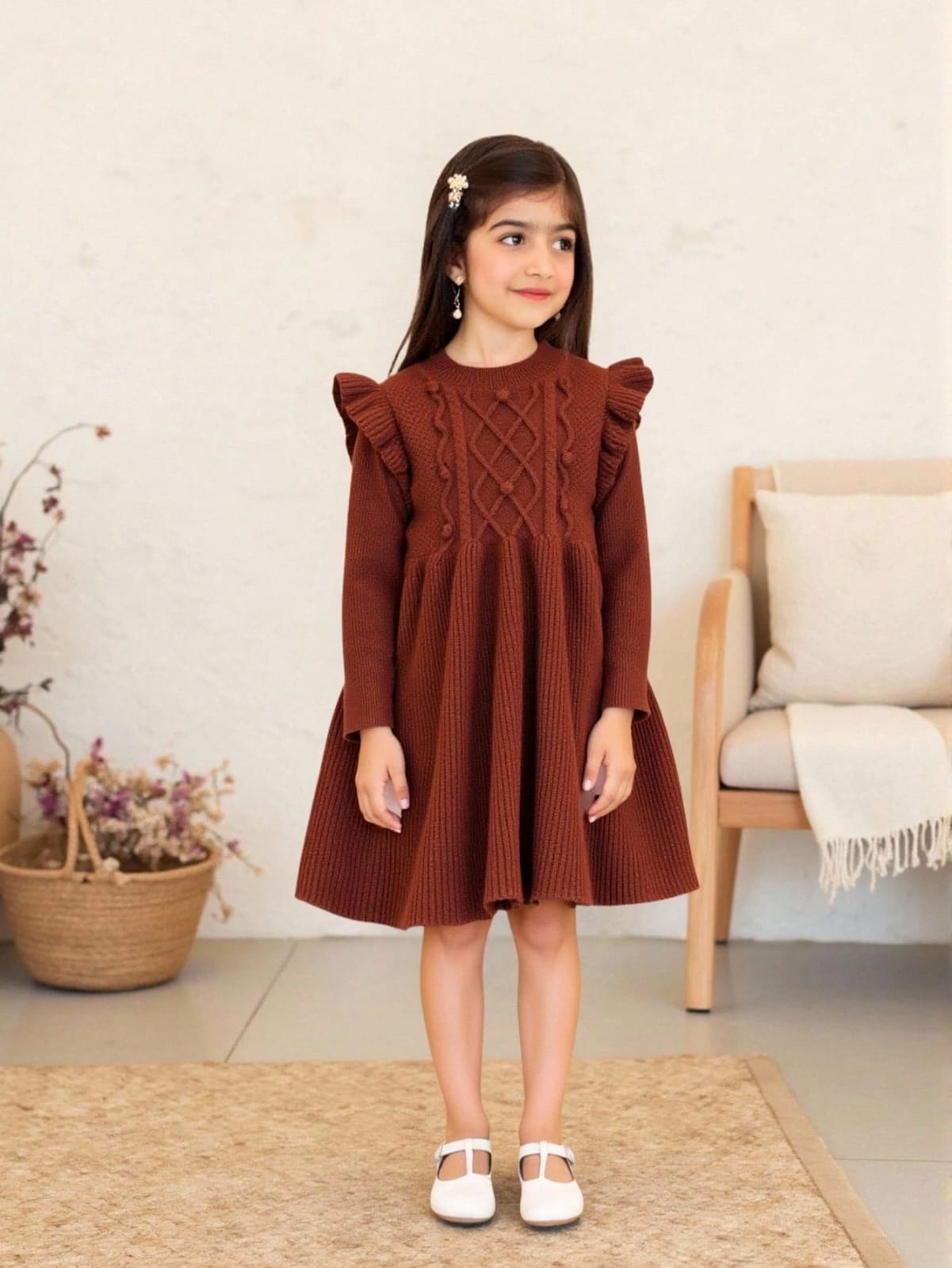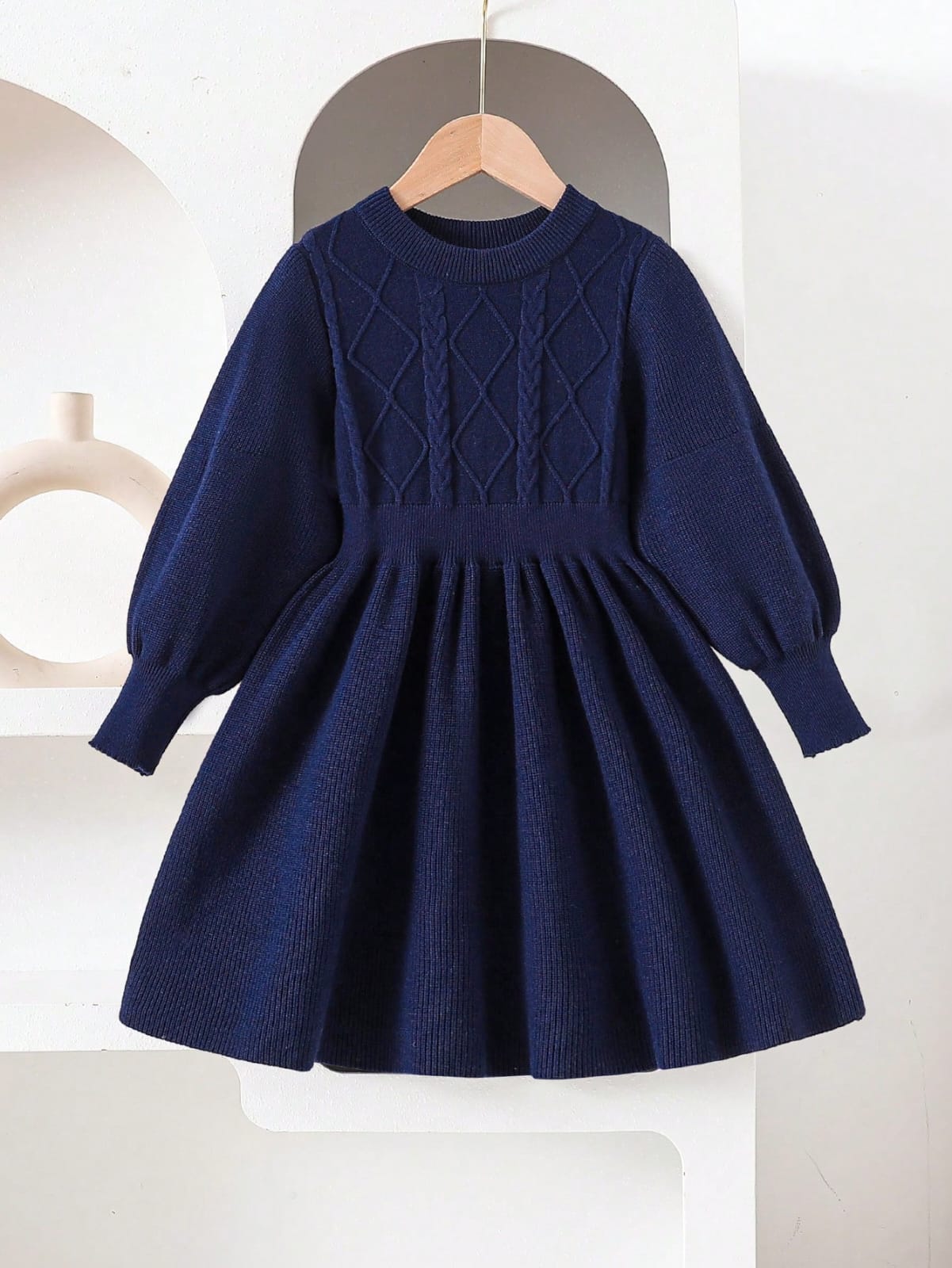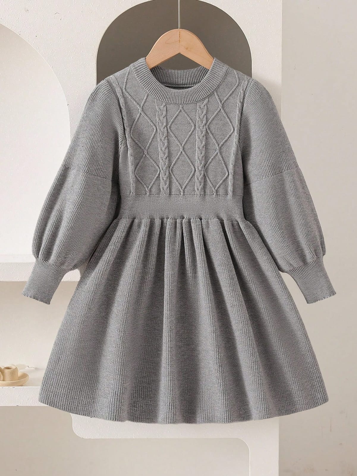 Elladie kids فستان كنزة صوفية كابل محبوك دافئ بلون المشمش للفتيات الصغيرات، فستان محبوك طويل الأكمام بياقة مستديرة، مناسب للارتداء اليومي، للربيع والخريف والشتاء