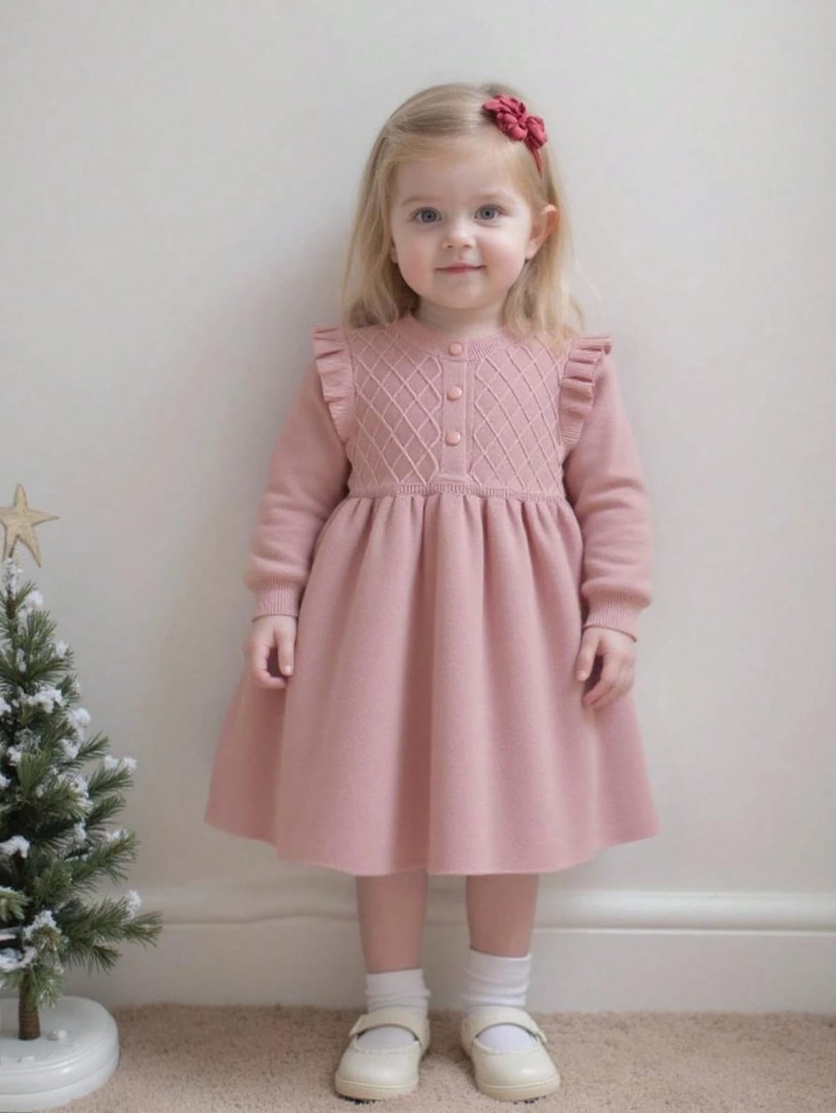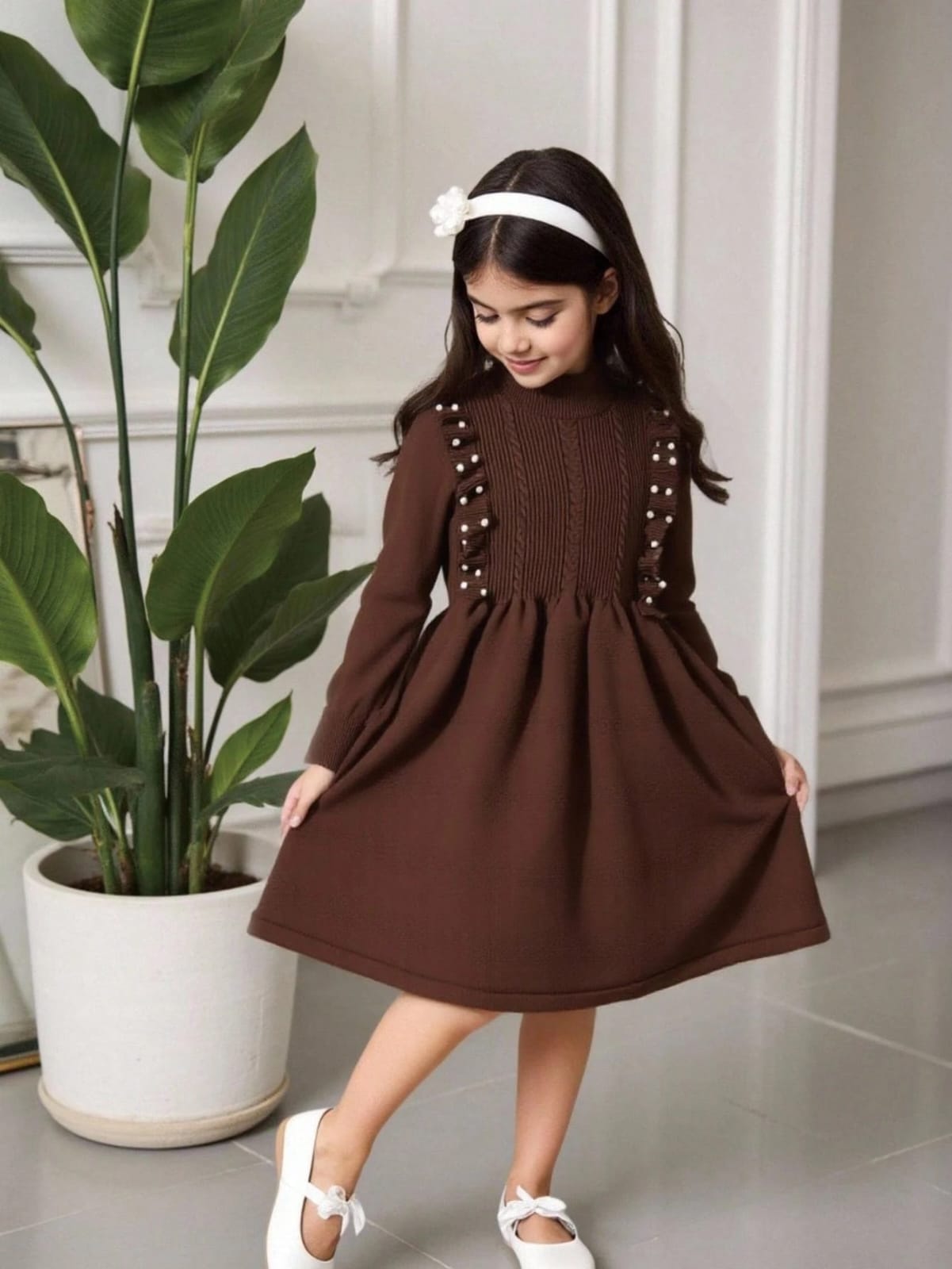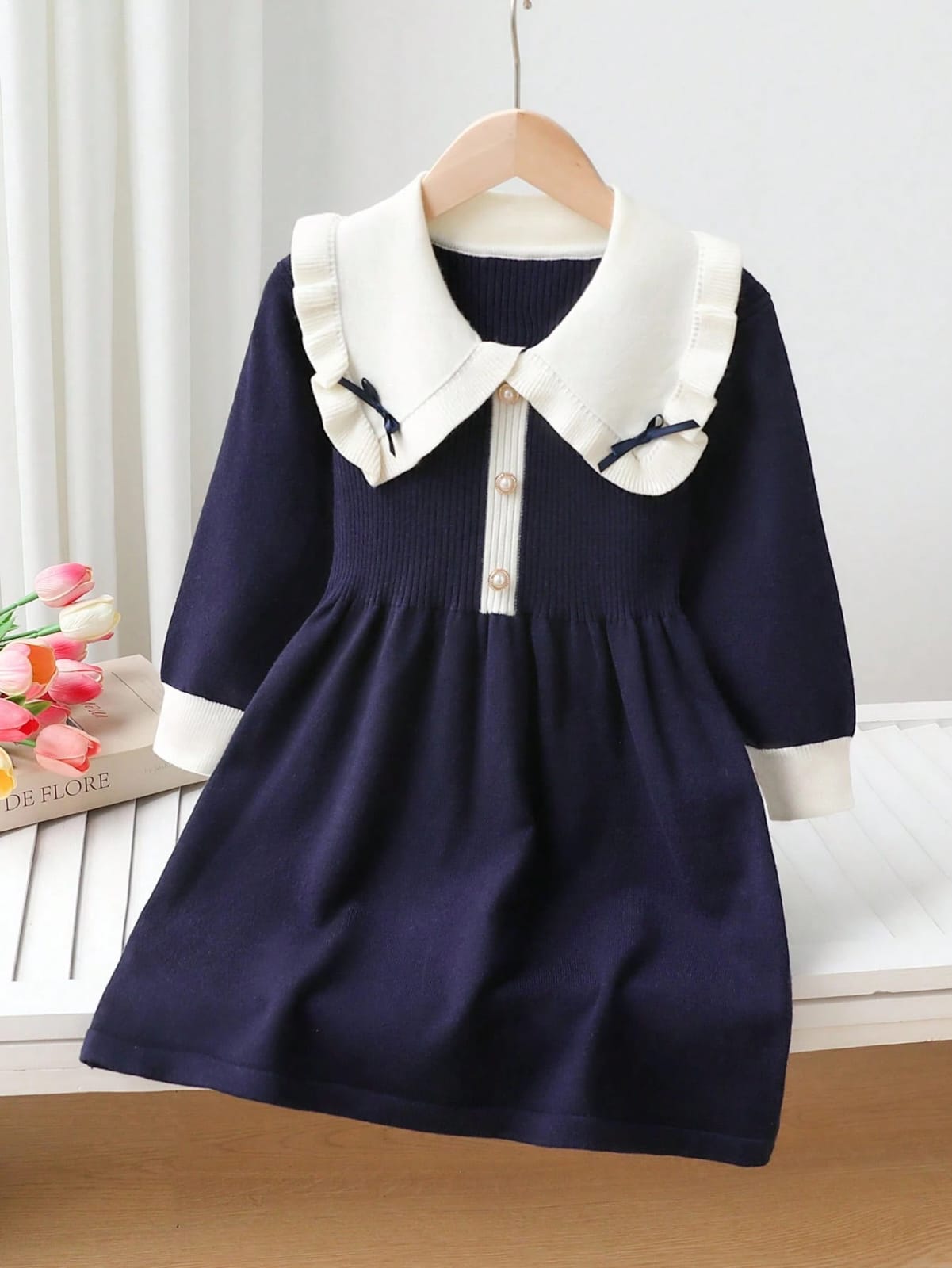 Elladie kids فستان كنزة صوفية كابل محبوك دافئ بلون المشمش للفتيات الصغيرات، فستان محبوك طويل الأكمام بياقة مستديرة، مناسب للارتداء اليومي، للربيع والخريف والشتاء
