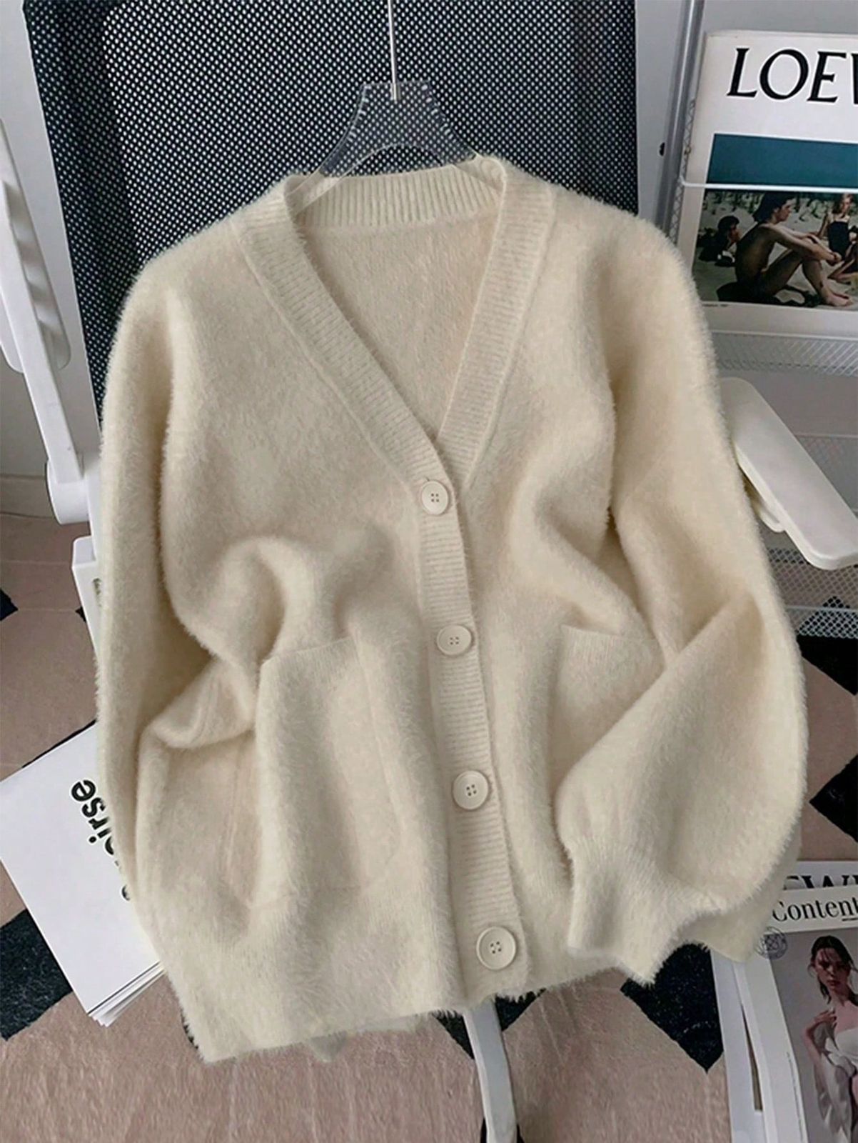 1 قطعة كارديجان كنزة صوفية من الفرو الاصطناعي أنيقة وعصرية، مناسبة للمواعيد والأنشطة الخارجية غير الرسمية والسفر في فصلي الخريف والشتاء