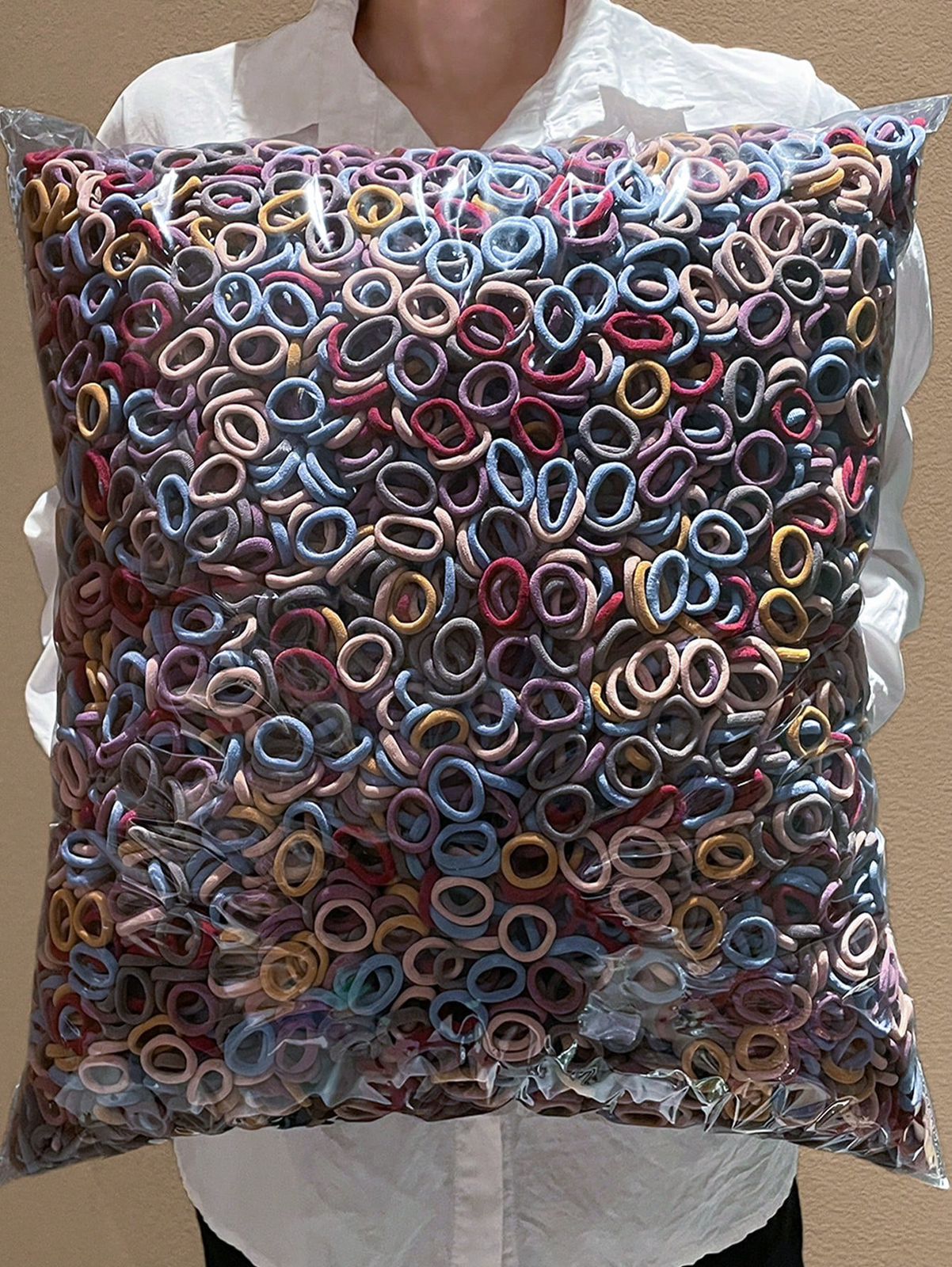كيس كبير مليان توك شعر مطاط صغيرة جدًا بألوان كتير (مناسبة للأطفال أو التسريحات البسيطة).