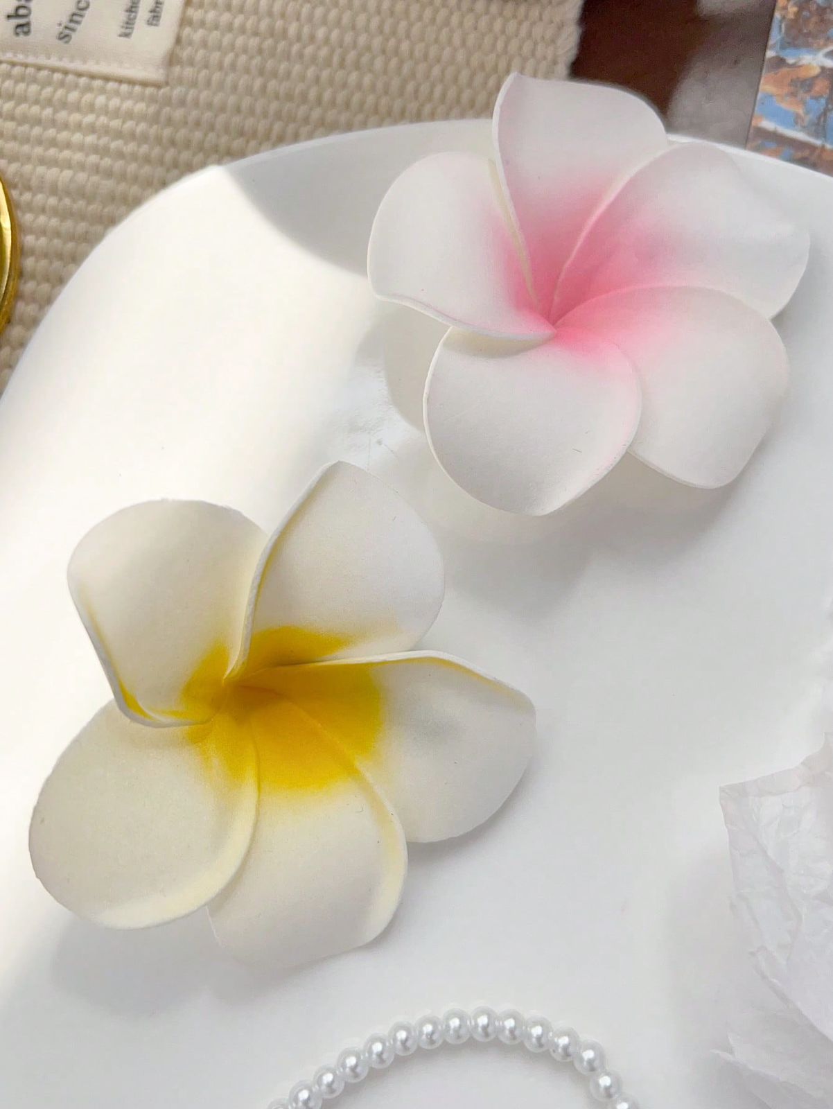 مشابك شعر كبيرة على شكل وردة (Plumeria)، شكلها صيفي وملفت.