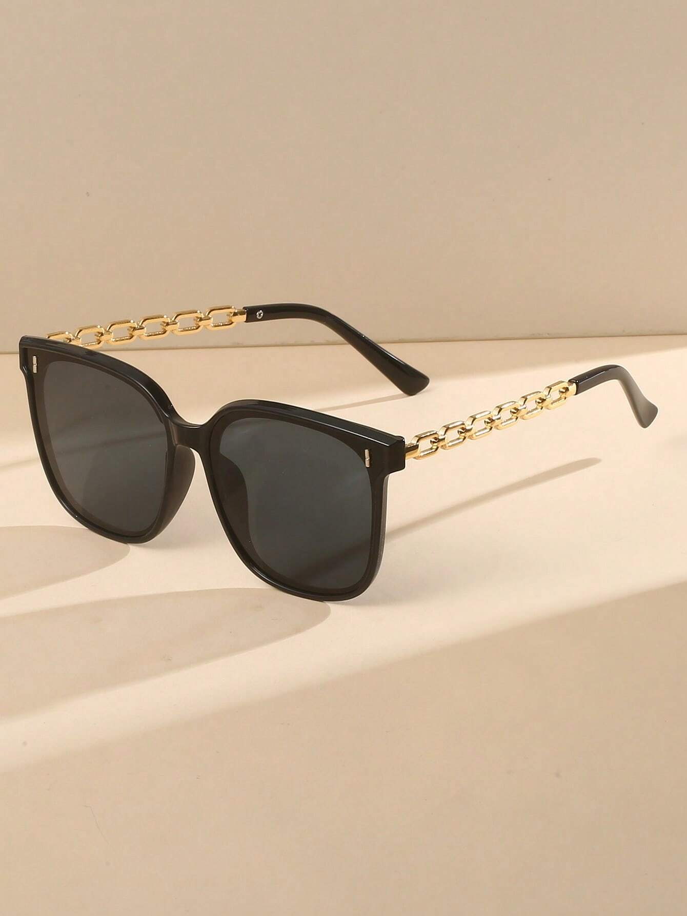 زوج واحد من النظارات الشمسية النسائية المزينة بسلسلة على الطراز القديم، ملائم للحياة اليومية وأنشطة السفر والخارج على الشاطئ، إكسسوارات نظارات للملابس النسائية الأساسية من خريف وشتاء، هدايا ملابس كاجوال أنيقة للصيف والسفر وأنشطة الخارج، إطار مربع كبير على الطراز القديم للخروج والعودة للمدرسة